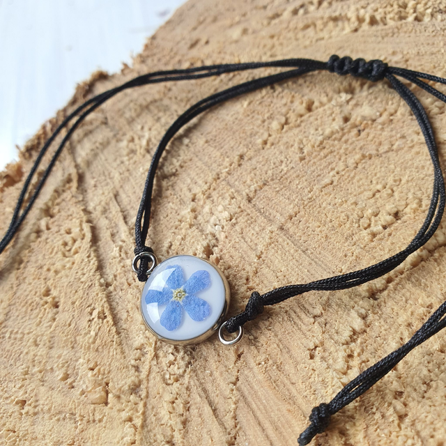 Bransoletka z niezapominajką na sznureczku (regulowanym).